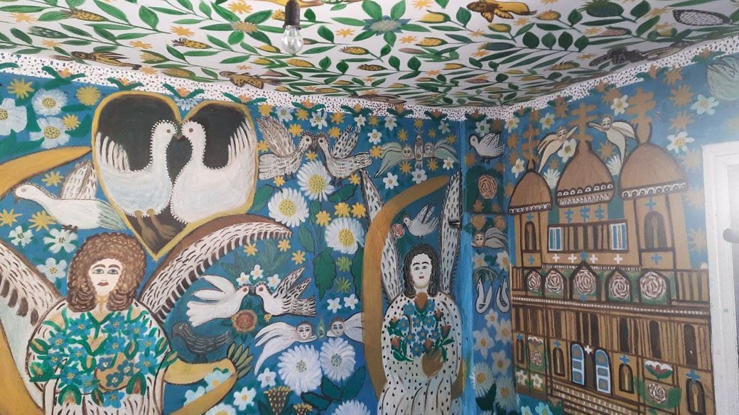 | Фрагмент розпису в будинку Поліни Райко до підтоплення. Фото: Наталія Тимофєєва | Зруйновані фрески після підтоплення |