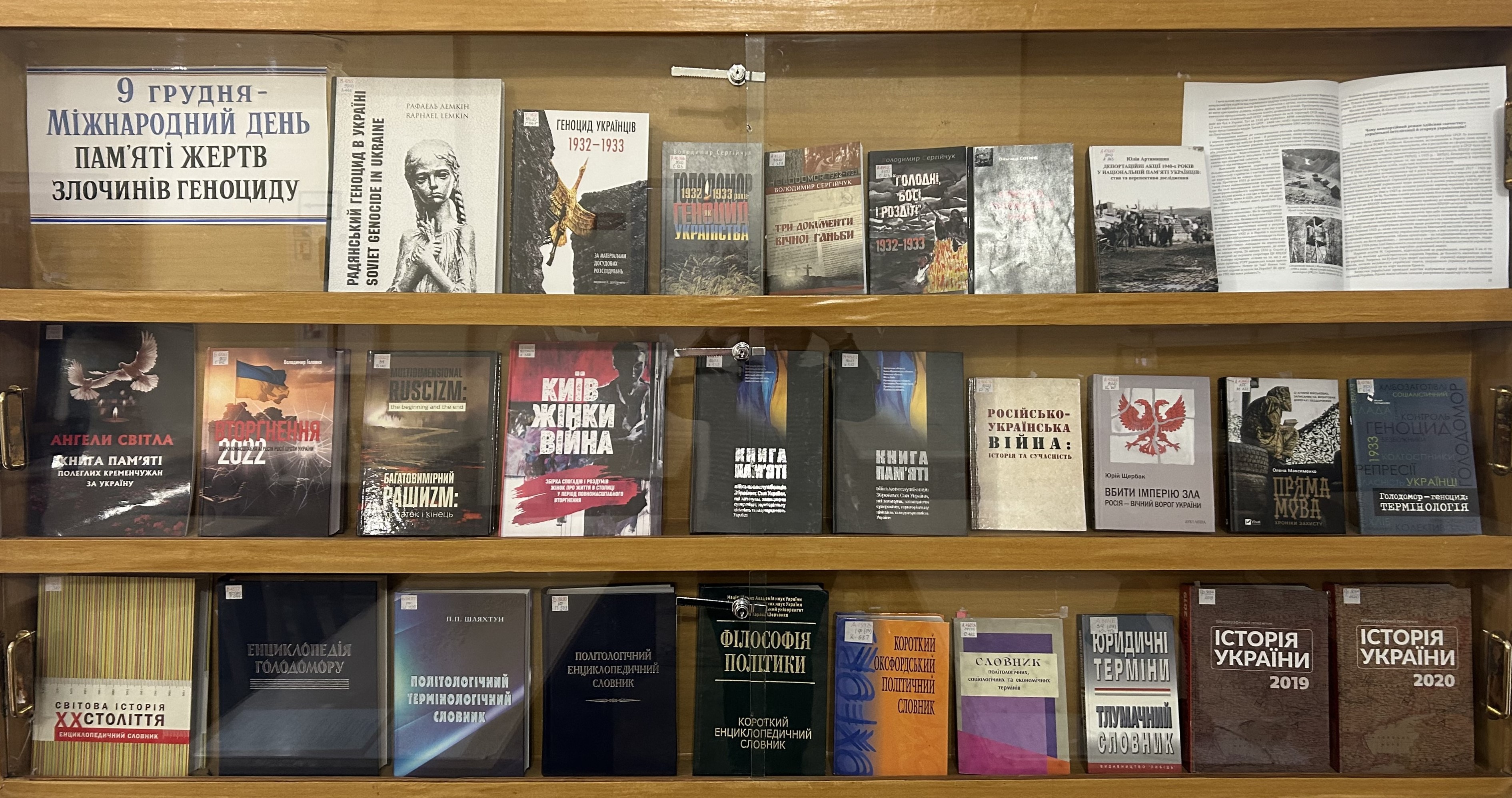 На виставці презентовано: довідники, енциклопедії, наукові видання, бібліографічні посібники. Матеріал може бути корисним для студентів, викладачів та аналітичних експертів у дослідженні питань з історії Геноциду.