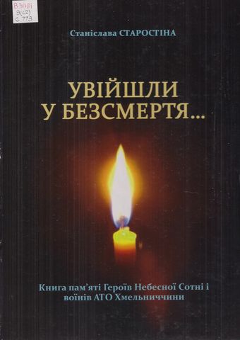 Старостіна С. Л. Увійшли у безсмертя... Книга пам’яті Героїв Небесної Сотні і воїнів АТО Хмельниччини / С. Л. Старостіна. – Хмельницький: Цюпак, 2016. – 179 с.: іл., фот.