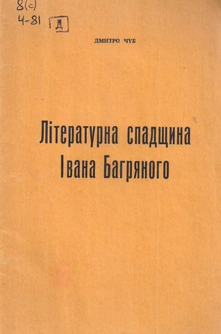 Чуб Д. Літературна спадщина Івана Багряного / Д. Чуб. – Торонто ; Едмонтон, 1980. – 21 с.