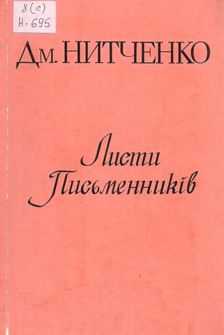 Нитченко Д. Листи письменників : І. Багряний, В. Винниченко, В. Гайдарівський, А. Гак, А. Галан, В. Гжицький, О. Кобець, У. Самчук / Д. Нитченко. – Мельборн : Ластівка, 1992. – 250 с. : іл. – прим. : З автографом автора.