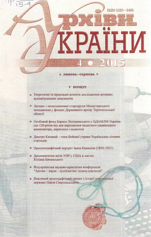 Терещенко, О. В. Дипломатична місія УНР у США в листах Юліана Бачинського / О. В. Терещенко // Архіви України. – 2015. – № 4. – С. 201 – 230.