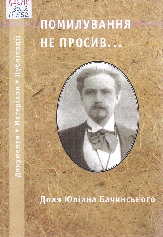 Помилування не просив... Доля Юліана Бачинського : документи, матеріали, публікації / НАН України. Ін-т політ. і етнонац. дослідж. ім. І. Ф. Кураса, Ін-т українознавства ім. І. Крип’якевича. – Львів, 2020. – 263 с. : портр.
