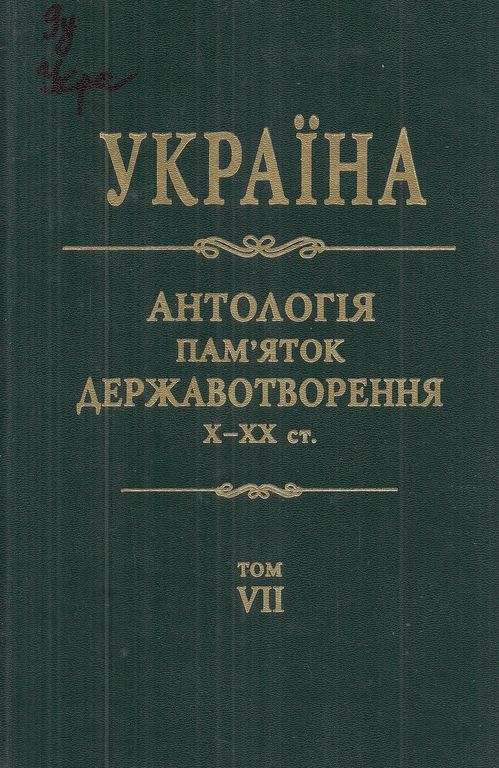 Україна: антологія пам’яток державотворення X – XX ст. : у 10 т. Т.7 : Відродження української державності / упоряд. Д. Павличко. – Київ : Вид-во Соломії Павличко Основи, 2008. – 703 с.