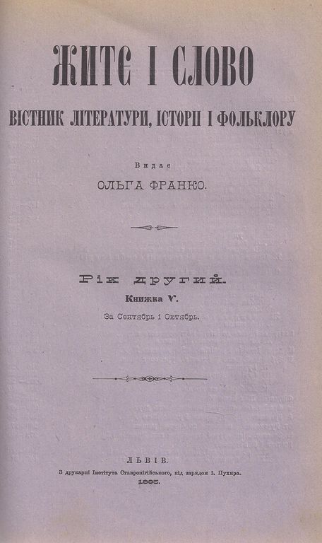 Франко, Іван. Ukraina irredenta / І. Франко // Житє і слово. – 1895. – Т. IV. Ч. 6. – С. 471 – 483.