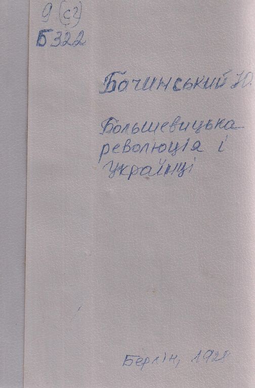 Бачинський, Юліан. Большевицька революція і Українці : Критичні замітки / Ю. Бачинський. – Берлін : Редер, 1928. – 136 с.
