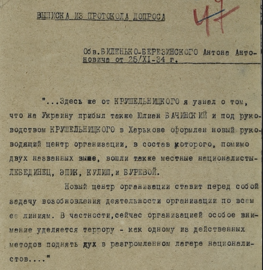 6 листопада 1934 року Юліана Бачинського заарештували та через тиждень відправили спецконвоєм до Києва. Його звинуватили у причетності до контрреволюційної організації «Об’єднання Українських Націоналістів» (справа №1255). 28 березня 1935 року засуджений до 10 років ув’язнення.