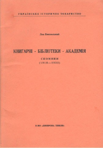 Биковський Лев. Книгарні – бібліотеки – академія: спомини: (1918–1922) / Л. Биковський ; літ. ред. К. Туркало. – Мюнхен ; Денвер : Дніпрова хвиля, 1971. – 152, [1] с. : фот. – (Українське історичне товариство ; Ч. 2).