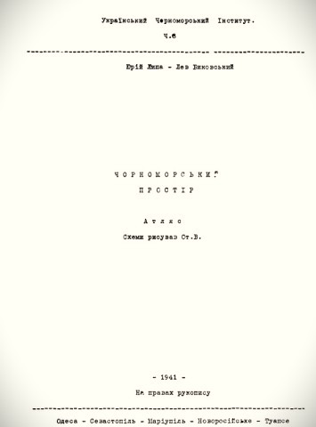 Липа Ю. Биковський Л. Чорноморський простір : атлас / Ю. Липа, Л. Биковський. – Севастополь, 1941. – 50 с.: 10 вкл. л. карт. (Видання Українського Чорноморського інституту, Ч. 8.)