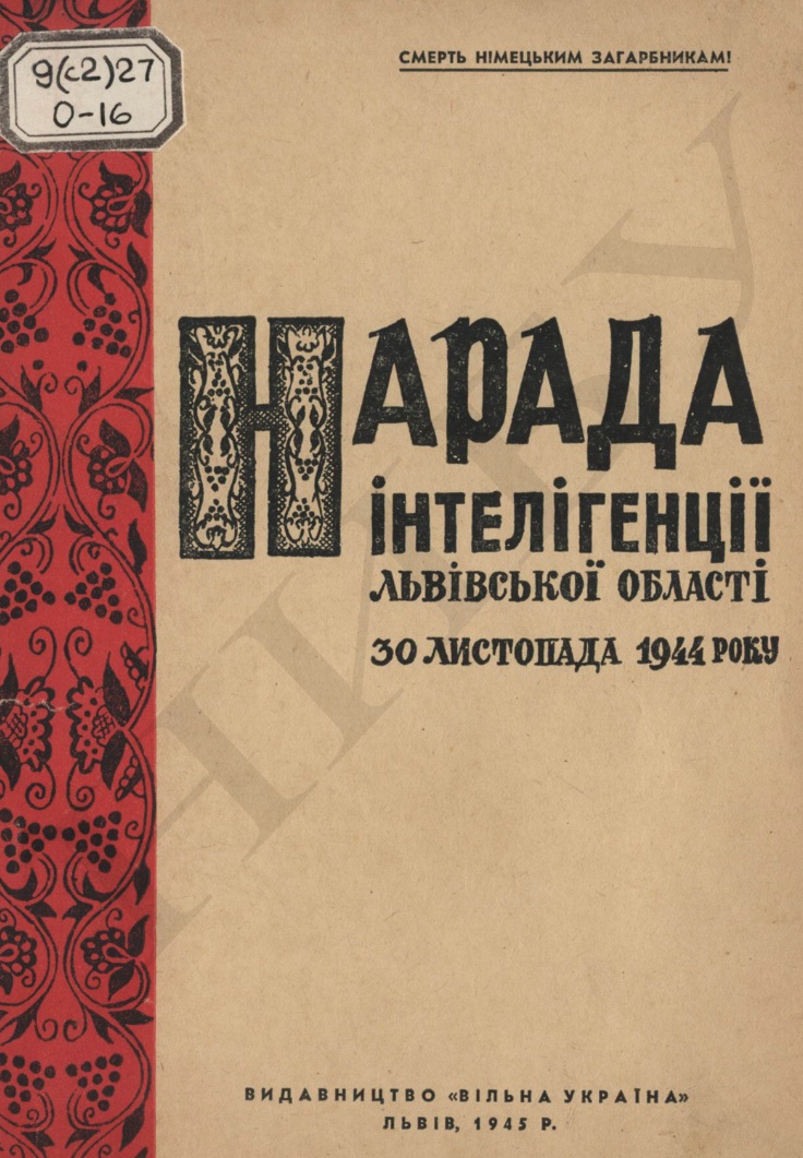 Обласна нарада інтелігенціі Львівської області 30 листопада 1944 року / відп. за вип. А. Хижняк. – Львів : Вільна Україні, 1945. – 95 с.