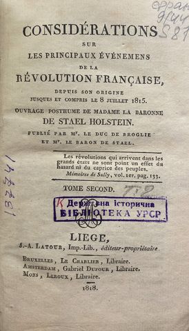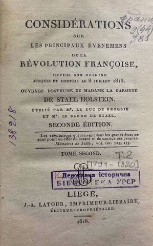 Stael. Considerations sur la Revolution Francaise [Текст] : Т. 2. Pt. 4-6 / Stael. - Paris : G. Chapentier, s.a. - 307 p.