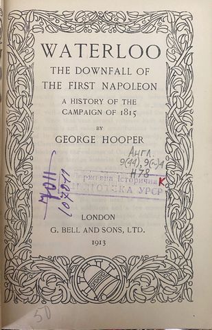 Hooper, George. Waterloo. The downfall of the first Napoleon. A history of the campaign of 1815 [Текст] / G. Hooper. - London : Bell, 1913. - X, 345 p.