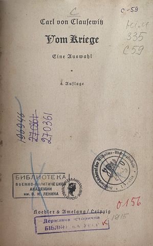 Clausewitz, Carl (von). Vom Kriege. Hinterlassenes Werk [Текст] / C. Clausewitz. - Berlin : [s. n.], 1957. - 958 s.