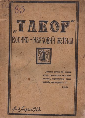 «Табор» : воєнно-науковий журнал. Орган молодої української армії. Ч. 1. – Київ. Липень, року Божого 1923. – 150 с.