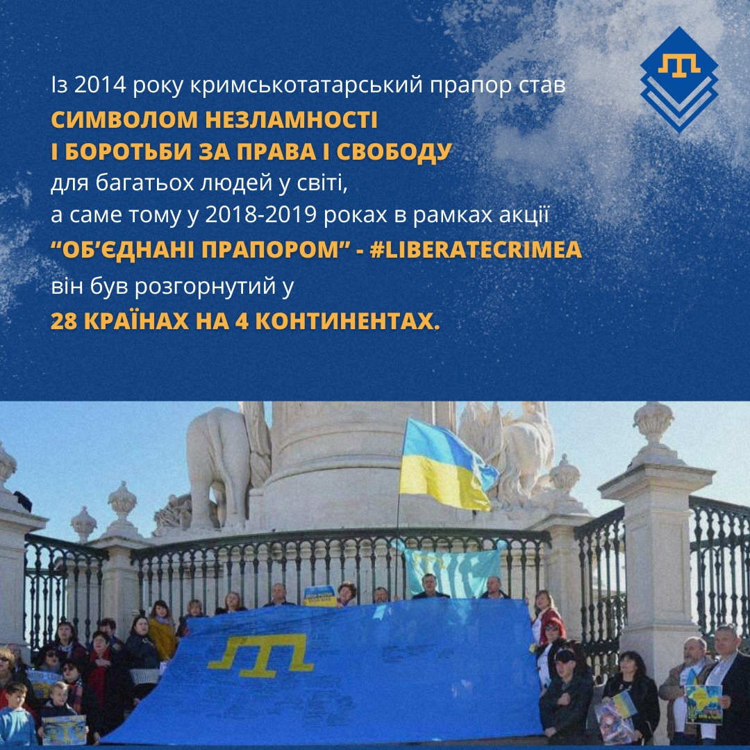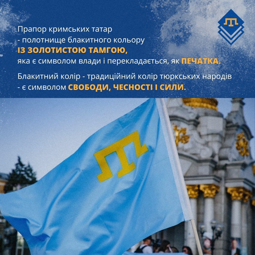 Кримськотатарський прапор – полотнище блакитного кольору із золотистою тамгою – родовим знаком правлячої династії у період державності кримських татар. Був затверджений на 1-му Курултаї (національному з'їзді) кримських татар у 1917 році. День національного прапора кримських татар відзначається 26 червня, у зв'язку з повторним затвердженням його на 2-му Курултаї кримськотатарського народу, що відбувся у червні 1991 року.