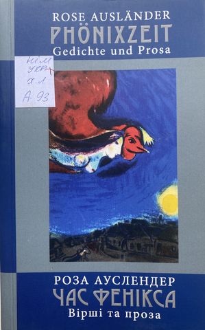 Ausländer, Rose. Phönixzeit. Gedichte und Prosa [Текст] / R. Ausländer. - Czernowitz : [s. n.], 2011. - 352 s. - Нім. - укр. Шифр видання: ХЛ/A93 Роза Ауслендер — одна з видатних німецькомовних поетес нашого часу, поруч із Ельзою Ласкер-Шюлер, Неллі Закс, Марією-Луїзою Кашніц та Інгеборг Бахман. Її поезія, на перший погляд проста, торкається вічних тем людського життя, наповнена пристрастю, живою думкою та випромінює енергію добра, краси й любові. Друге видання книги містить нові переклади поезій, а також уривки есеїстики, літературної критики та публіцистики, які пояснюють художні принципи її творчості та показують тісний зв’язок поетеси з Буковиною. |