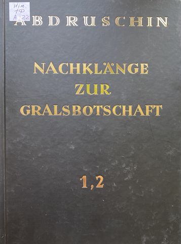 Abdruschin (1875–1941). Nachklänge zur Gralsbotschaft [Текст] . Band 1 ; Band 2 / Abdruschin. - Изд. ориг. нем. изд. 1934 г. - Rowno : Волинські обереги, 2022. - 643 s. - Нім. Шифр видання: 1Ф/A22 Доповнення до попереднього, містить коментарі, роздуми, продовження містичних й духовних тем основного твору. Поглиблений рівень для тих, хто знайомий з Gralsbotschaft. |