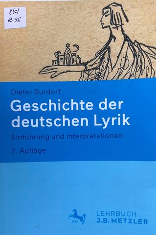 Burdorf, Dieter. Geschichte der deutschen Lyrik [Текст] : einführung und interpretationen. 2. aktualisierte und erweiterte Auflage / D. Burdorf. - Berlin : J. B. Metzler, 2023. - 296 s. : il. - Нім. Шифр видання: 8(с)/B96 У книзі висвітлено розвиток німецької поезії від Реформації до сучасності і поділена на основні літературні періоди: бароко, класицизм, романтизм, модернізм і постмодерн. У виданні аналізуються важливі твори кожної епохи, пояснюються художні прийоми та основні підходи до розуміння поезії. |