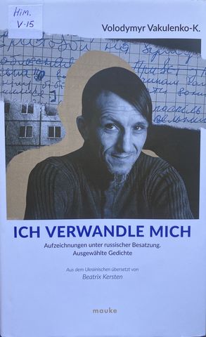 Vakulenko, Volodymyr. Ich verwandle mich [Текст] : aufzeichnungen unter russischer Besatzung ; ausgewärte gedichte / V. Vakulenko. - Weimar : Friedrich Mauke Verlag, 2025. - 175 s. : il., fot. - Нім. Шифр видання: ХЛ/ V15 Збірка щоденникових записів і поезій, створених під час російської окупації його рідного села у 2022 році. Книга відображає особисті переживання автора, його боротьбу за гідність і творчість у надзвичайно небезпечних умовах, а також є свідченням опору української культури. |