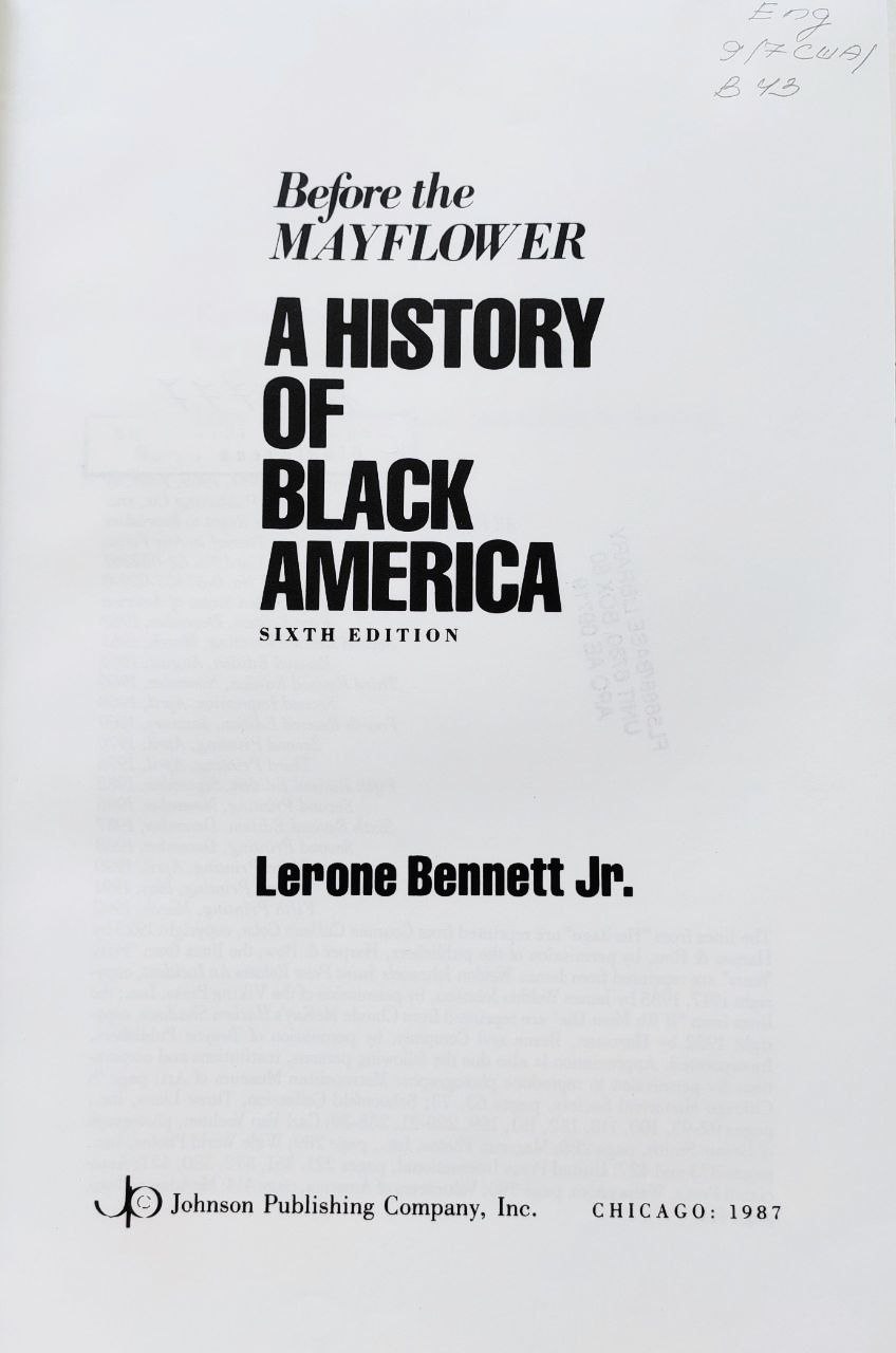 Bennet, Lerone Jr. Before the Mayflower. A history of black America [Текст] / L. Jr. Bennet. - 6-th ed. - Chicago : Johnson Publishing Company, inc., 1987. - 689 p.