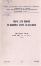 Шептицький, А. Твори слуги Божого митрополита Андрея Шептицького. Пастирські листи (2. VIII. 1899 р. – 7. IX. 1901 р.). Т. 1 / А. Шептицький. – Торонто, 1965. – 278 с.