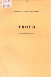 Митрополит Шептицький, А. Твори: (аскетично-моральні) / А. Шептицький. – Львів : Свічадо, 1994. – 494 с. – (Видання Українського Католицького університету ім. св. Климента Папи. Праці Греко-Католицької Богословської Академії ; Т. 45-47).