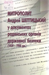Митрополит Андрей Шептицький у документах радянських органів державної безпеки (1939-1944 рр. ). – Київ : Українська Видавнича Спілка, 2005. – 480 с.