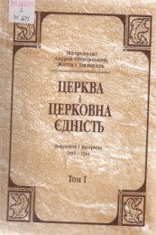 Митрополит Андрей Шептицький: життя і діяльність. Т. 1: Церква і церковна єдність : документи і матеріали, 1899–1944 / Постуляція митрополита Андрея Шептицького, Центральний державний архів України (Львів) ; голов. ред. А. Кравчук. – Львів : Свічадо, 1995. – 523 с. : 1 л. портр.
