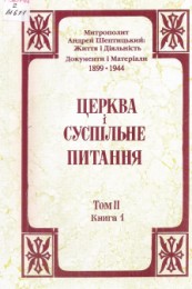 Митрополит Андрей Шептицький: життя і діяльність : документи і матеріали 1899–1944. Т. 2: Церква і суспільне питання. Кн. 1: Пастирське вчення та діяльність / Постуляція митрополита Андрея Шептицького, Центральний державний архів України (Львів), Львівська богословська академія ; голов. ред. А. Кравчук. – Львів : Місіонер, 1998. – 571 с. : фот.
