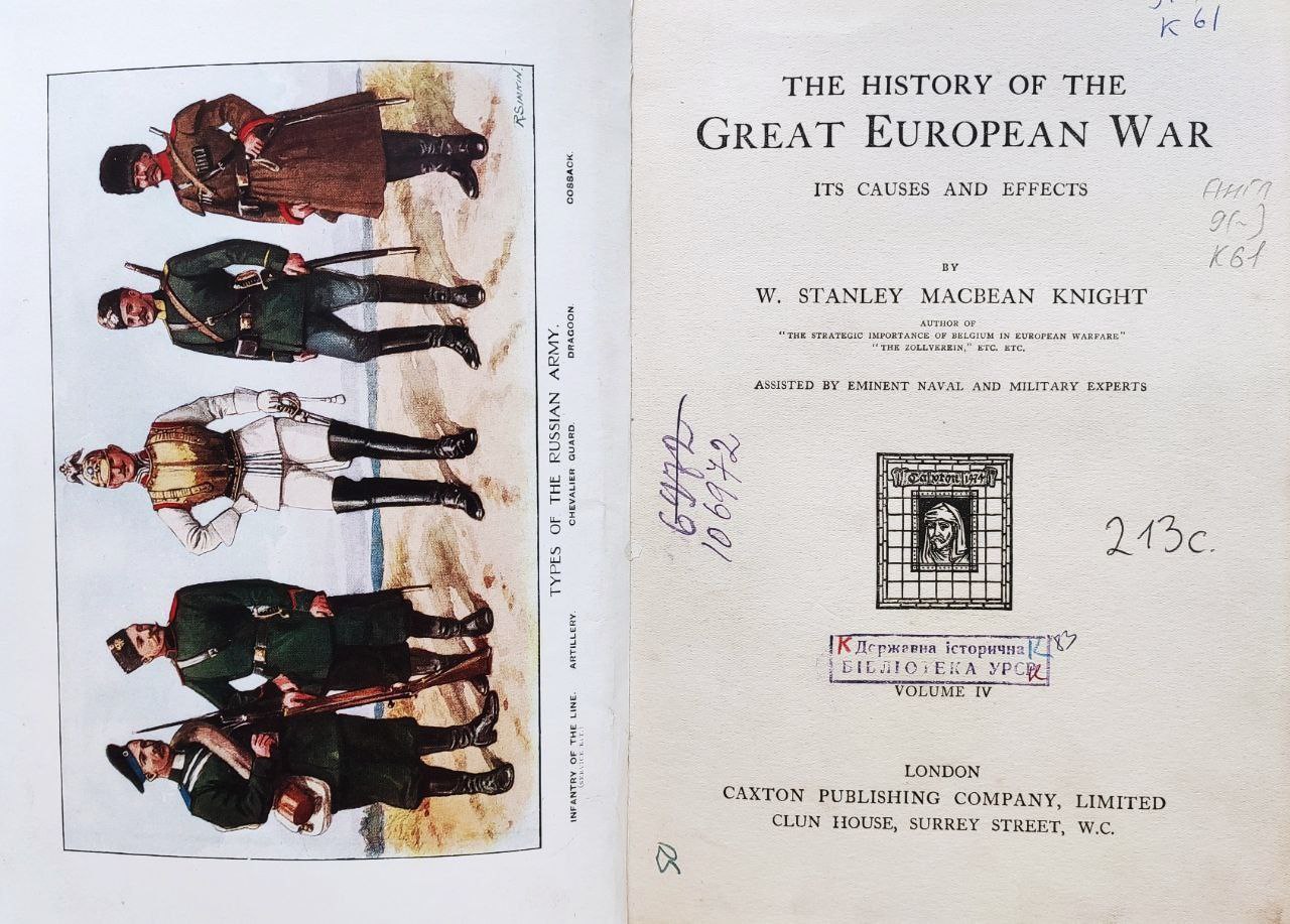 Knight, Stanley Macbean. The History of the Great European War, its causes and effects [Текст] : By the author of "The strategic importance of Belgium in European warfare" etc. Assisted by Eminent naval and military experts. Т. 4 / W. S. M. Knight. - [S. l. : s. n.], s. a. - 214 p.