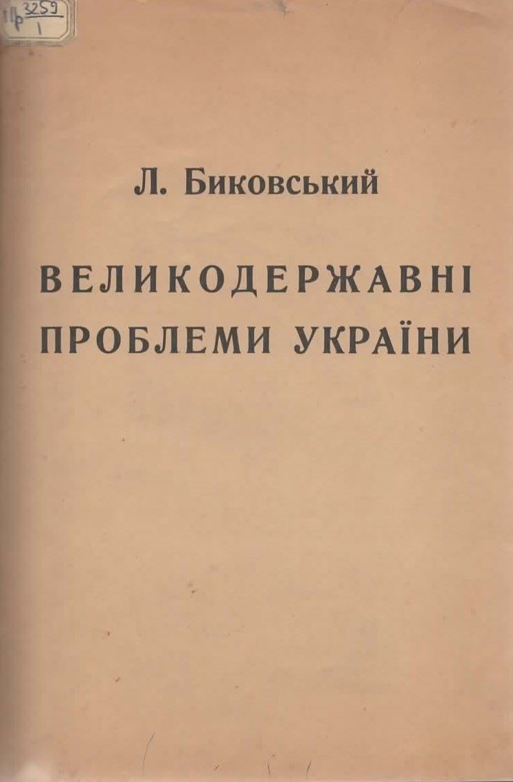 2. Биковський Л. Великодержавні проблеми України / Л. Биковський ; Український Океанічний Ін-т (Ч. 1). – Київ, 1942. – 24 с.: іл. (відбитка з «Чорноморського збірника», кн. 1 ; Вид. Українського Чорноморського ін-ту, Ч. 10). Шифр: Пр3259/1