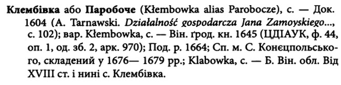 Після Люблінської унії село Klembowkа ввійшло до Брацлавського воєводства. Це зафіксовано у одному із найбільших зібрань історичних джерел у ХІХ ст. у польській історичній науці видання «Źródła dziejowe». А. Павинський, О. Яблоновський. У цьому томі було зібрано матеріали королівських ілюстрацій українських земель з першої половини XVII ст.