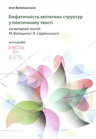 Волковинська, І. Емфатичність епітетних структур у поетичному тексті (на матеріалі поезій М. Волошина і В. Свідзінського) : монографія. – Кам’янець-Подільський : Рута, 2016. – 202 с.