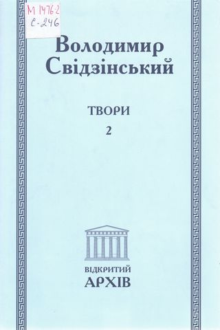 Свідзінський, В. Твори у двох томах. Т. 2 : Переклади. Статті. Листи / В. Свідзінський. – Київ : Критика, 2004. – 509 с.
