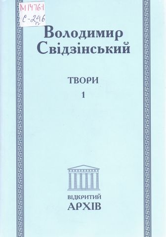 Свідзінський, В. Твори у двох томах. Т. 1 : Поетичні твори / В. Свідзінський. – Київ : Критика, 2004. – 581 с.