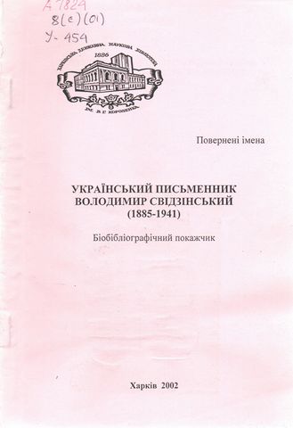 Український письменник Володимир Свідзінський (1885-1941) : біобібліографічний покажчик / уклад. Н. І. Полянська ; Харківська держ. наукова бібліотека ім. В. Г. Короленка. – Харків, 2002. – 84 с.