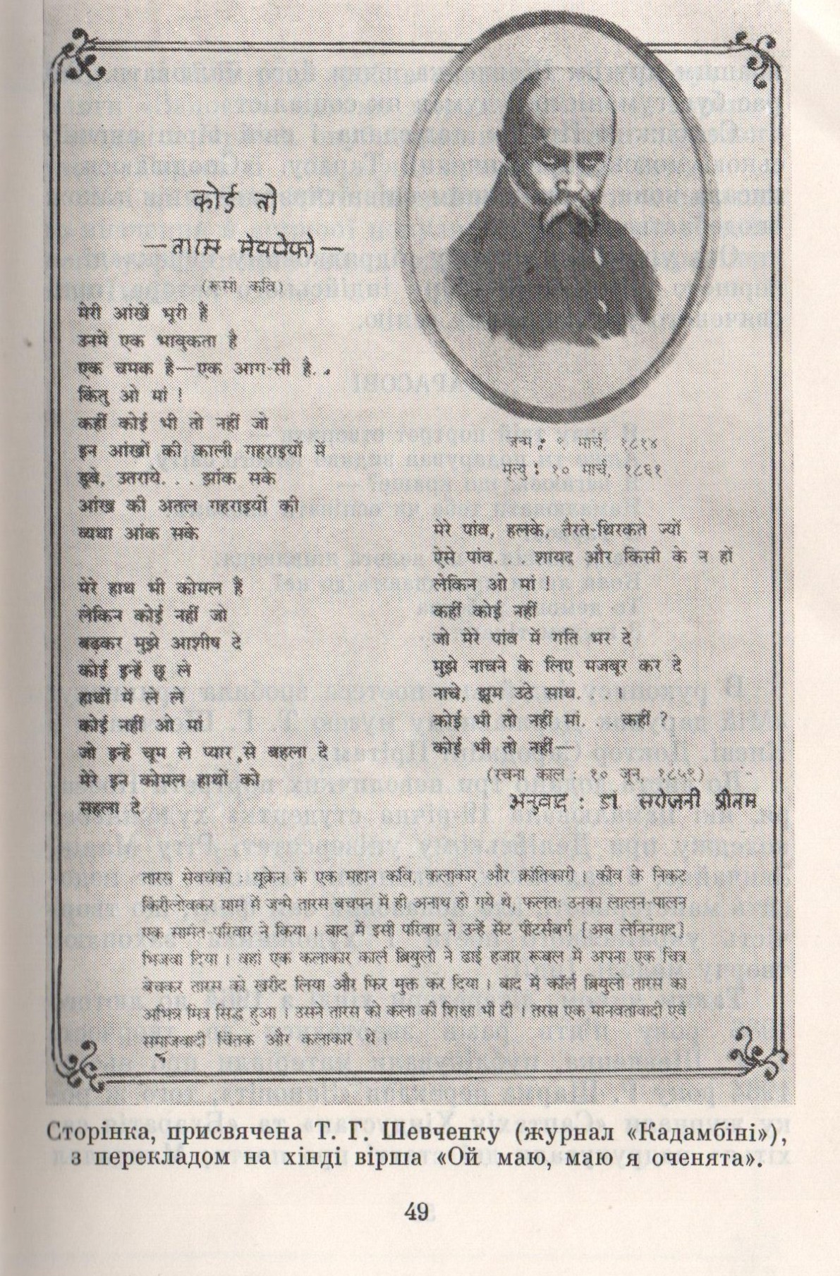 У книжці наводяться листи тих індійських та ланкійських літераторів, які мають безпосереднє відношення до популяризації спадщини Т. Г. Шевченка серед своїх співвітчизників. Вкраплення з листів індійських митців, учених збагатило розповідь про те, яким бачать вони великого українського поета.