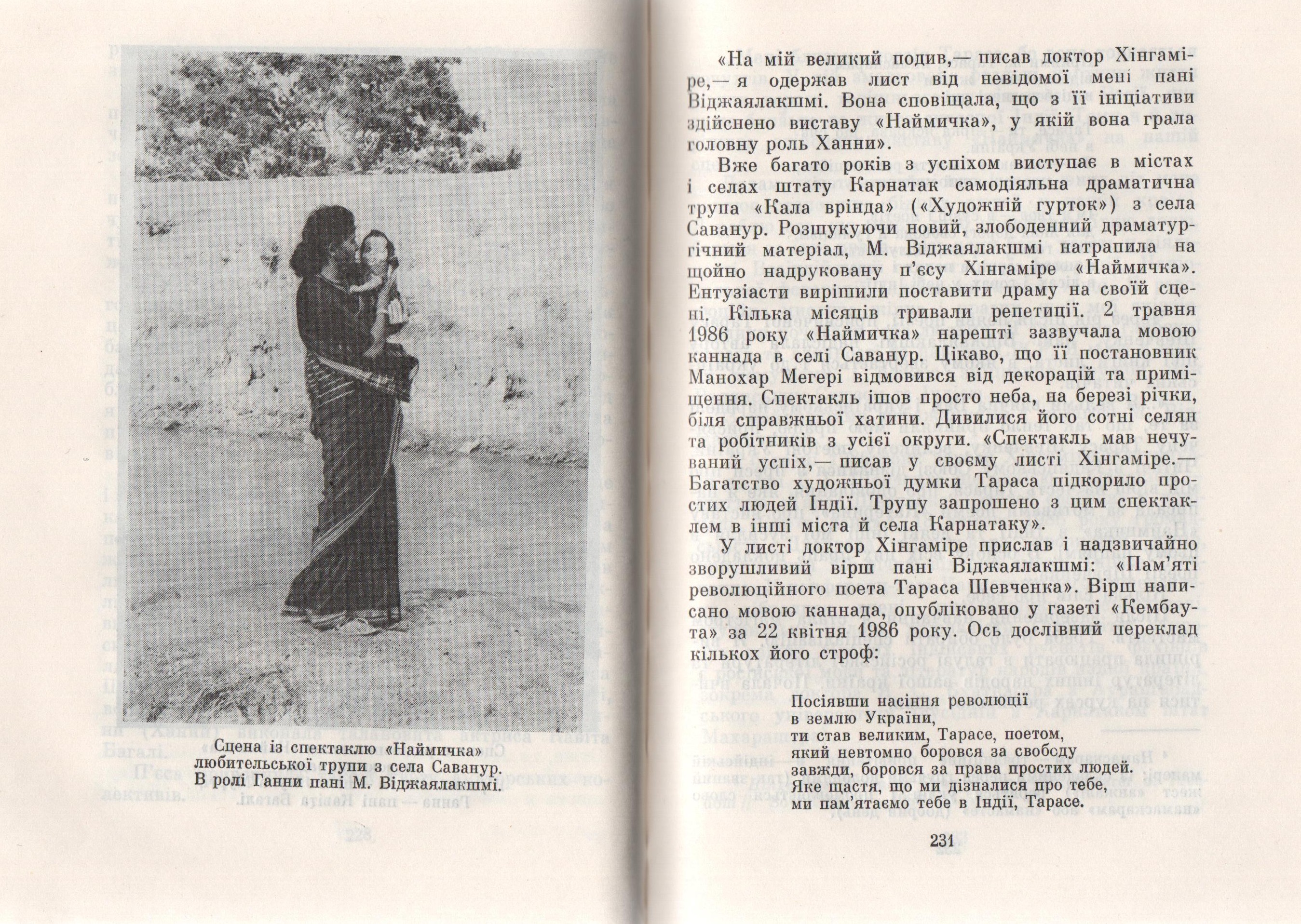 У книжці наводяться листи тих індійських та ланкійських літераторів, які мають безпосереднє відношення до популяризації спадщини Т. Г. Шевченка серед своїх співвітчизників. Вкраплення з листів індійських митців, учених збагатило розповідь про те, яким бачать вони великого українського поета.