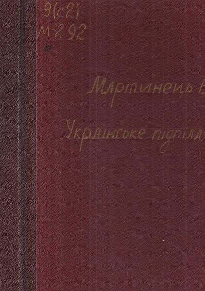 Мартинець, В. Українське підпілля. Від У.В.О. до О.У.Н. : спогади й матеріали до передісторії та історії укр. організованого націоналізму / В. Мартинець. – Вінніпег, 1949. – 349, LХХV с. : іл.