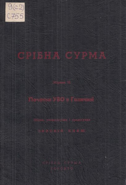 Срібна сурма : Статті і матеріяли до діяння української військової орг. Зб. 2 : Початки УВО в Галичині / зібрав, упоряд. і зред. З. Книш. – Торонто : Срібна сурма, [1962 ?]. – 166 с. : портр.