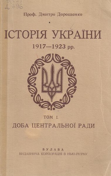 Дорошенко, Д. Історія України 1917–1923. Т. 1 : Доба Центральної Ради / Д. Дорошенко. - Фотодрук з 1-го видання, друкованого в Ужгороді 1930 р. – Нью-Йорк : Булава, 1954. – 437 с.