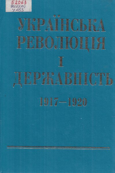Українська революція і державність (1917–1920 рр.) : науково-бібліографічне видання / Національна академія наук України, Національна бібліотека України ім. В. І. Вернадського ; ред. О. С. Онищенко. – Київ, 2001. – 803 с.