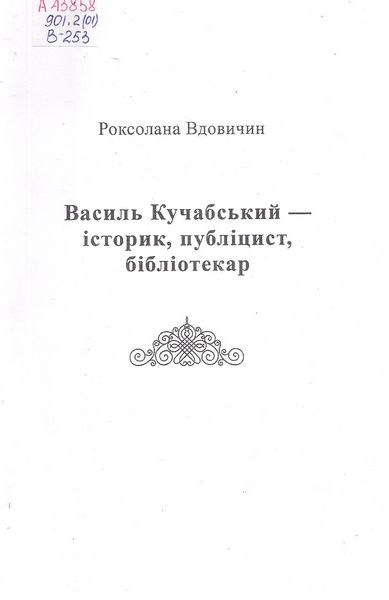 Вдовичин, Р. Василь Кучабський – історик, публіцист, бібліотекар : матеріали до біобібліографії / Р. Вдовичин ; вступ. ст. І. Вдовичин ; Національна академія наук України, Львівська національна наукова бібліотека України ім. В. Стефаника. – Львів, 2020. – 159 с.