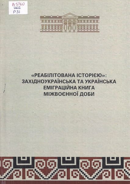 “Реабілітована історією”: західноукраїнська та українська еміграційна книга міжвоєнної доби : збірник наукових праць / Національна академія наук України, Львівська національна наукова бібліотека України імені В. Стефаника ; відп. ред. Л. В. Сніцарчук. –Львів : Галицька видавнича спілка, 2024. – 822 с.