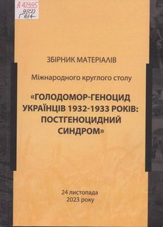 - Голодомор-геноцид українців 1932–1933 років: постгеноцидний синдром: зб. матеріалів Міжнародного круглого столу, 24 листопада 2023 року / Ун‑т Григорія Сковороди в Переяславі [та ін.] ; упоряд.: В. К. Молоткіна, Р. М. Потапенко. – Київ : Ліра-К, 2023. – 105 с. Шифр:А47395/9(с2)/Г614, №1175616–КУ.