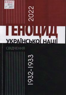 - Геноцид української нації 1932–1933/2022: свідчення / Нац. акад. правових наук України, Міжнар. асоц. дослідників Голодомору-геноциду, Нац. асоц. дослідників голодомору-геноциду українців, Фундація Українського Голодомору-геноциду (США) ; упоряд. О. О. Стасюк. - Київ : Домбровська Я. М., 2022. – 275 с. : фот. Шифр:А45887/9(с2)/Г345, №1166758 – КУ, №1166870 – КХ