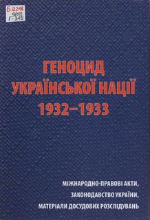- Геноцид української нації 1932–1933: міжнародно-правові акти, законодавство України, матеріали досудових розслідувань / Національна академія правових наук України, Служба безпеки України; упоряд. М. Герасименко [та ін.]. – Харків: Право, 2024. – 654 с. : табл. Шифр:Б12248/9(с2)/Г345, №1180216 – КУ