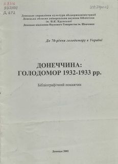 - Геноцид української нації 1932–1933/2022: свідчення / Нац. акад. правових наук України, Міжнар. асоц. дослідників Голодомору-геноциду, Нац. асоц. дослідників голодомору-геноциду українців, Фундація Українського Голодомору-геноциду (США) ; упоряд. О. О. Стасюк. - Київ : Домбровська Я. М., 2022. – 275 с. : фот. Шифр:А45887/9(с2)/Г345, №1166758 – КУ, №1166870 – КХ