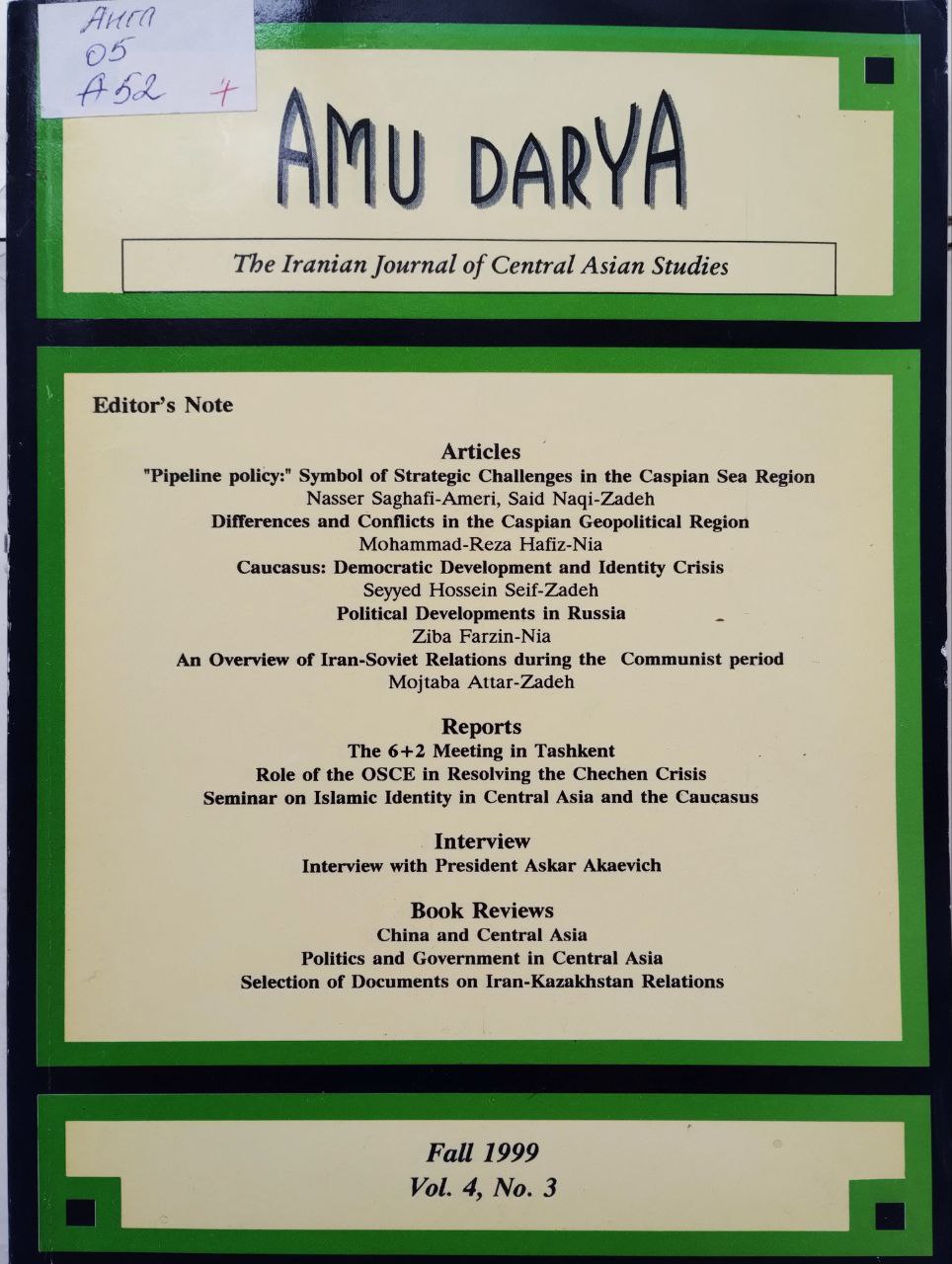 Amu Darya [Текст] : The iranian journal of central asian studies. Winter 2000. Т. 4. №4. - Tehran : [s. n.], 2000. - 469-628 p.
