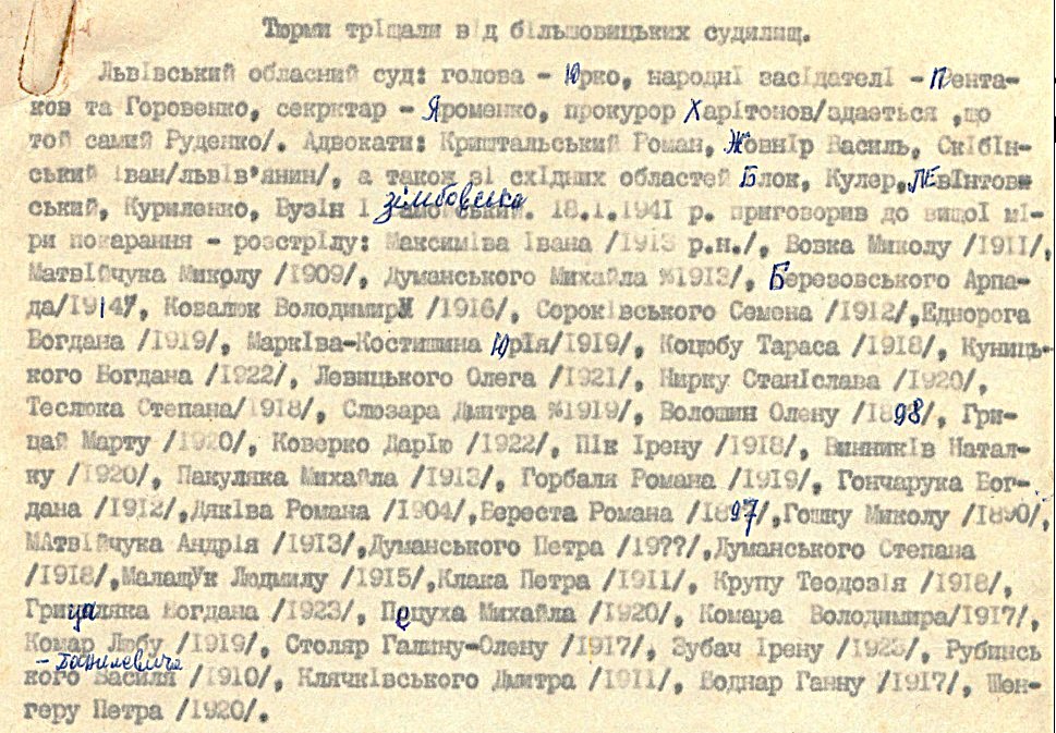 | Список імен взято із сату : Національний музей-меморіал жертв окупаційних режимів «Тюрма на Лонцького» | ||||